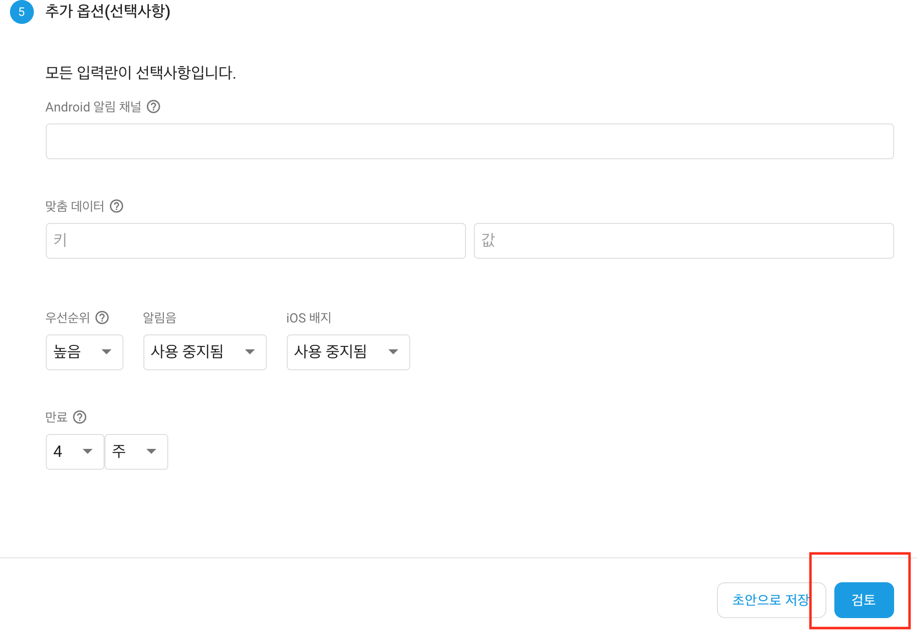 5단계에서 검토를 누르면 발송이 완료됩니다.