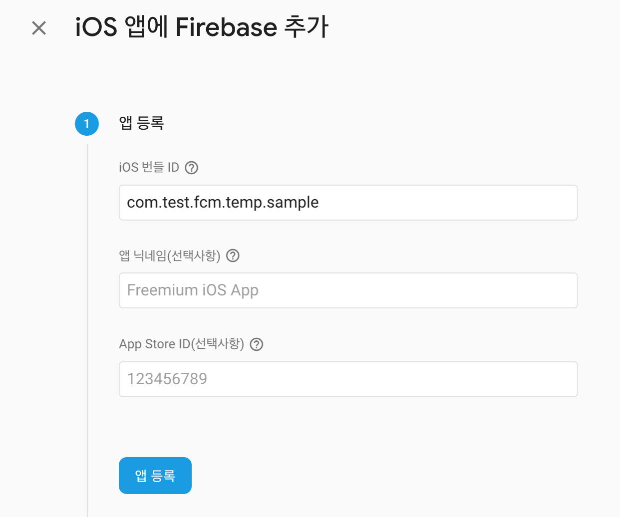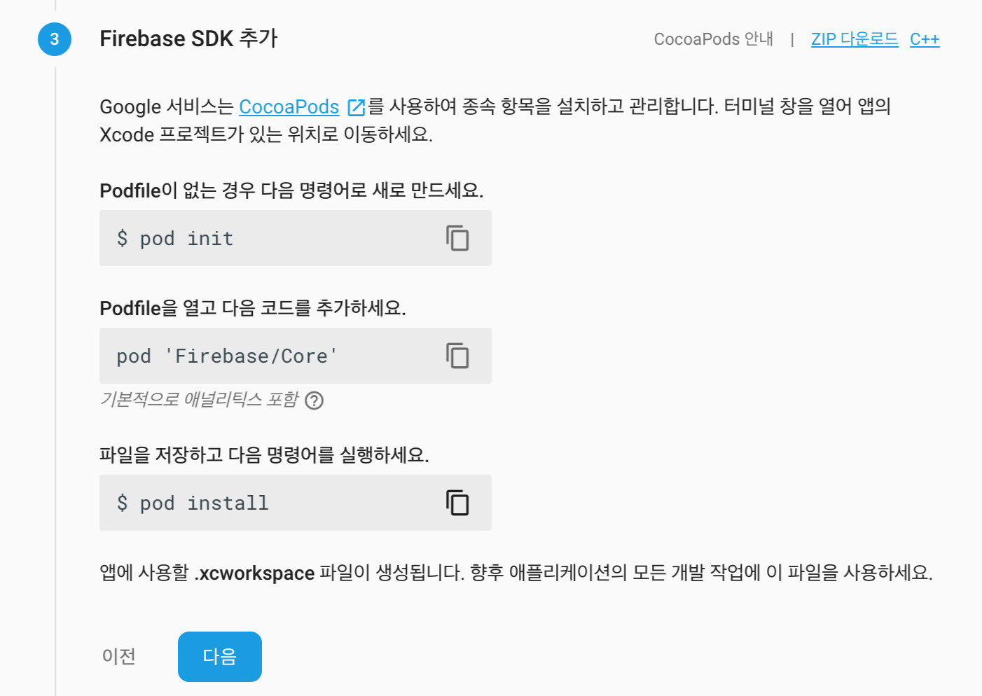 여기서 iOS 앱을 파이어베이스에 추가하겠습니다.