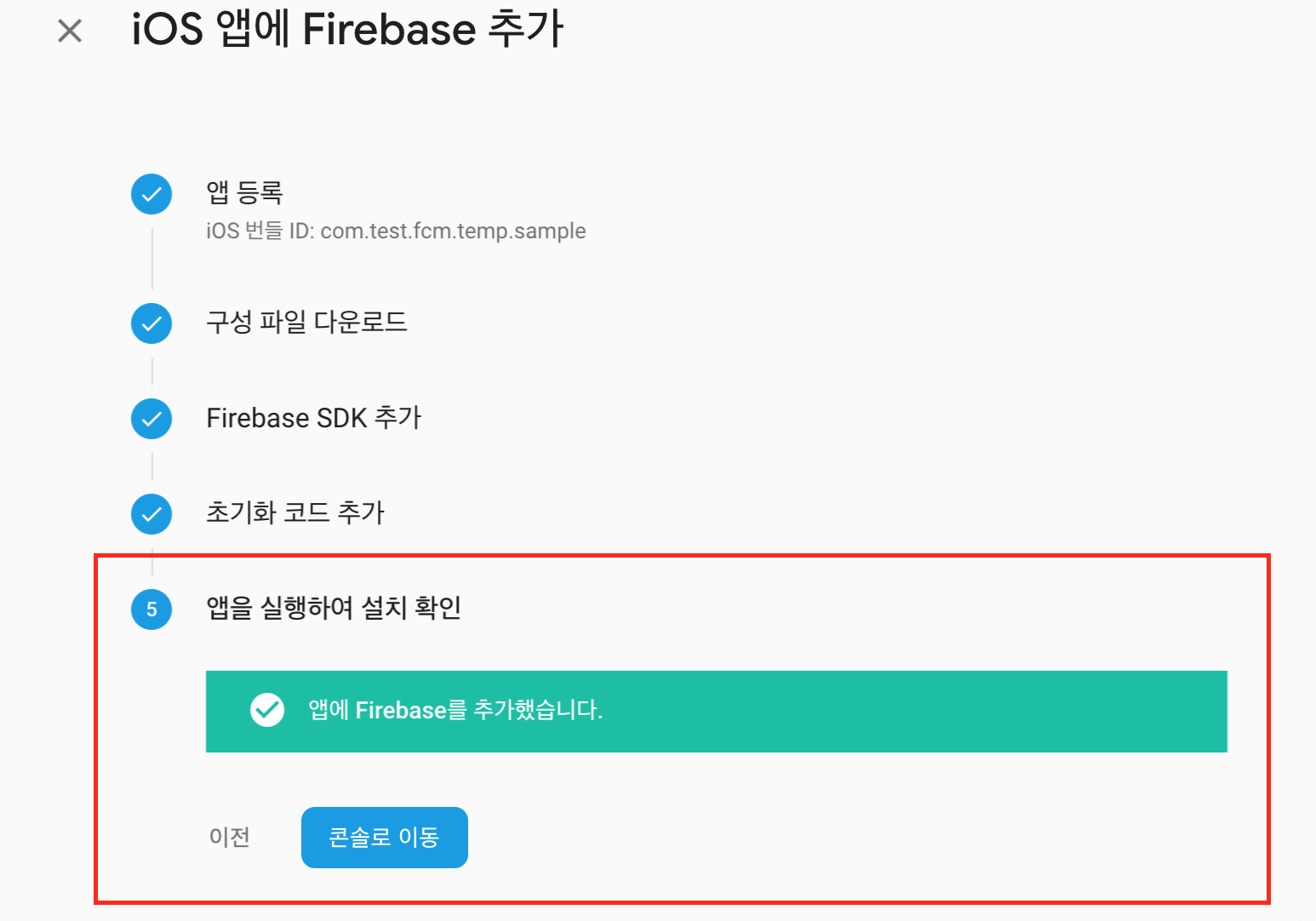 이제 console.firebase.google.com에서 마무리 못했던 5번을 확인해 보겠습니다.