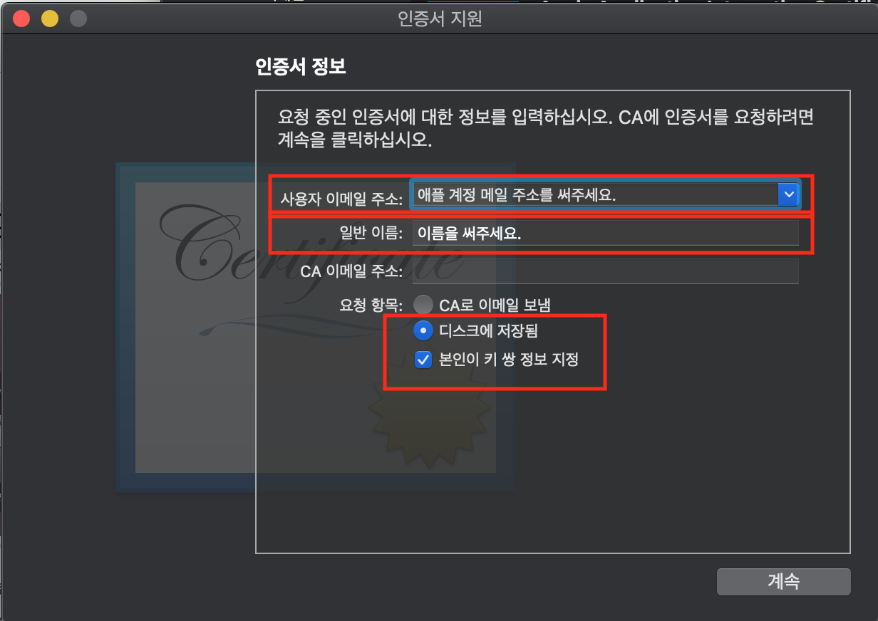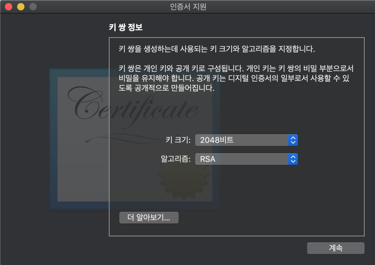 인증서를 발급받습니다.