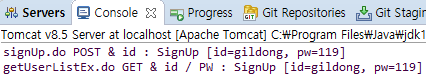 System.out.println("getUserListEx.do GET & id / PW : " + signUp.toString());