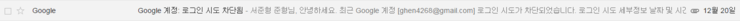구글이 사용자의 아이디에 대한 비정상적인 접근을 허용하지 않았기 때문이죠. 이럴 때에 지메일에 접속을 해 보면 다음과 같은 메일이
