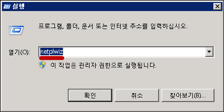 윈도우 + R로 실행창 실행후 netplwiz 입력하여 사용자 계정추가 부분으로 들어갑니다.