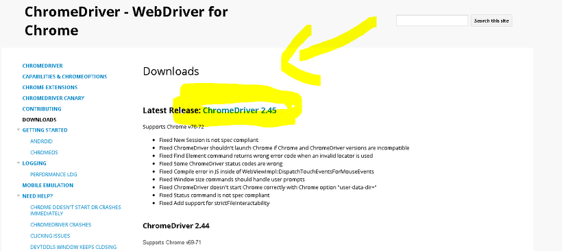 http://chromedriver.chromium.org/downloads << 여기로 이동합니다.