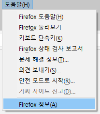 - 메뉴 - 도움말 - Firefox 정보를 클릭합니다.