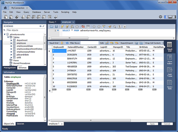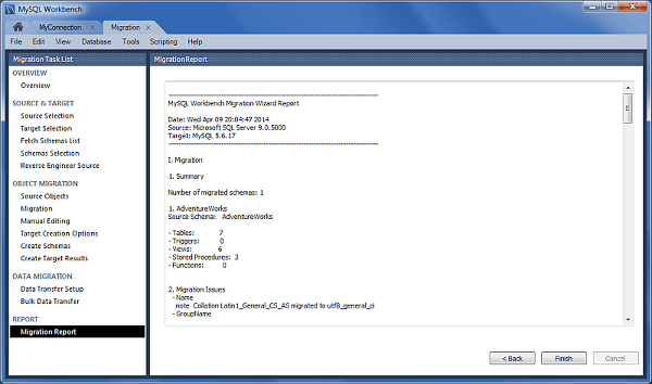 10.20 MySQL Workbench Migration: Viewing the Migrated Database