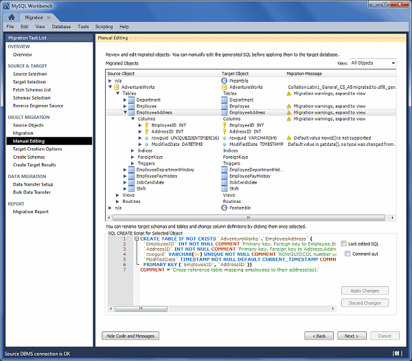 10.12 MySQL Workbench migration: Manual Editing (All objects)
