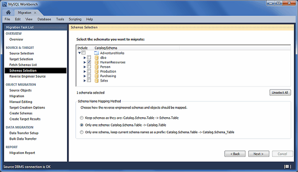 "Schema Name Mapping Method" options while migrating Microsoft SQL Server: