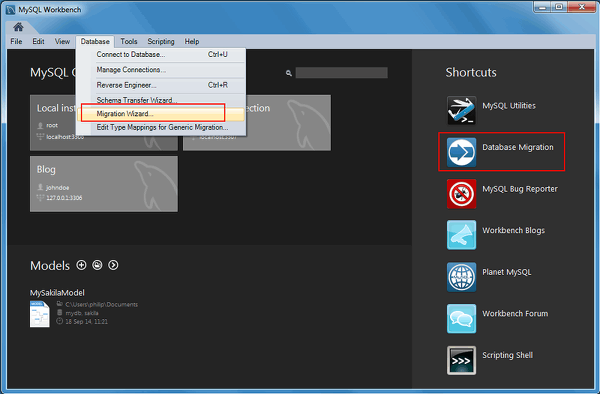 From MySQL Workbench, choose Database, Migrate to open the migration wizard.