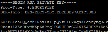 라는 텍스트가 출력이 되고 올바른 암호를 입력했다면 복호화된 개인키파일 형태가 출력되는 걸 확인할 수 있을 것이고(두번째 그림 같은) 틀린 암호를 입력했다면 오류메시지가 출력될 것이다.