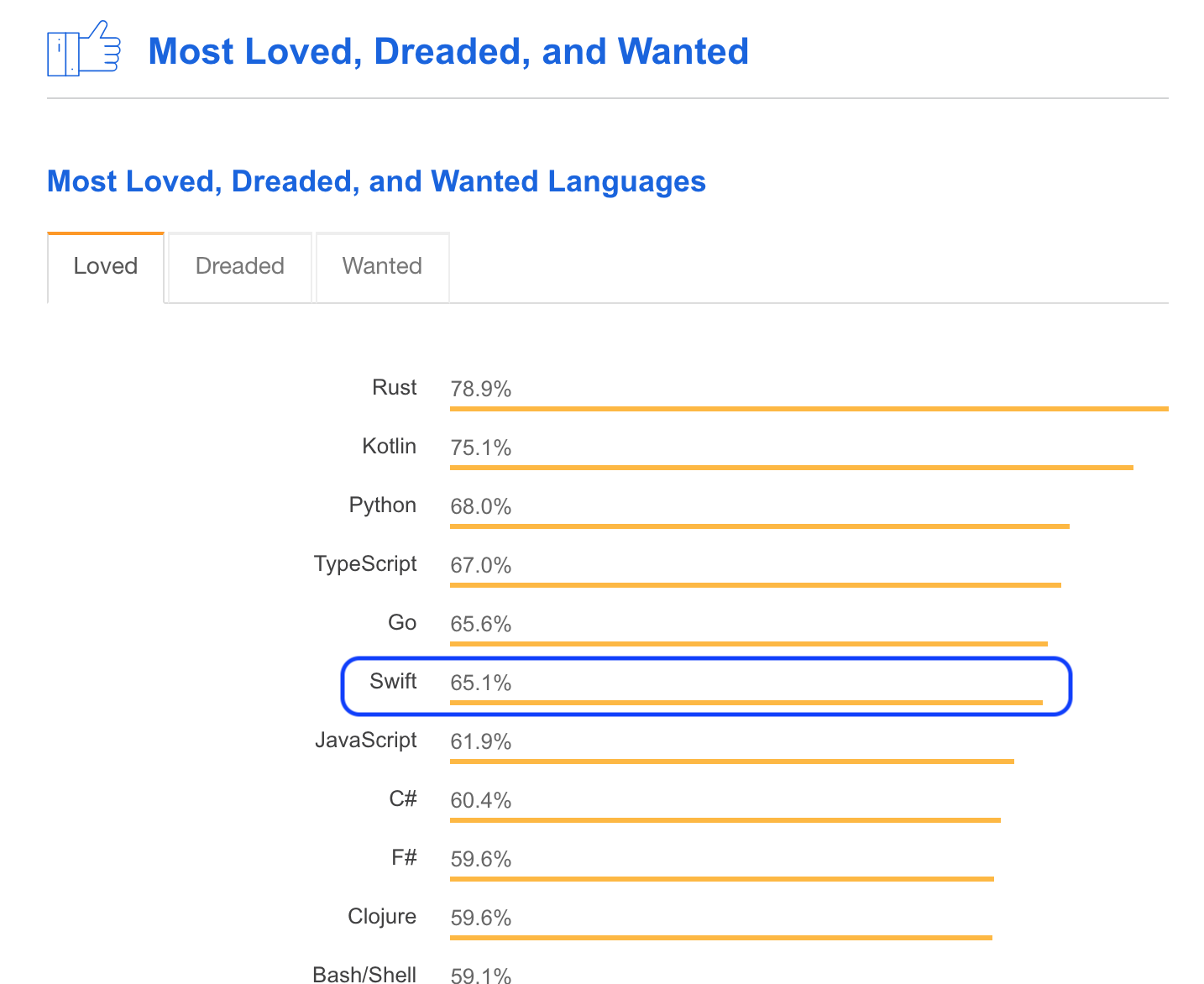 아래는 Stack Overflow Developer Survey 2018의 내용 중 화면 일부입니다.