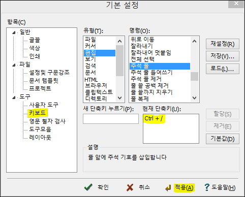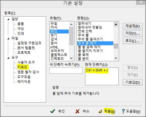 주석 달기와 주석제거를 단축키로 설정하는 방법을 간단하게 알아보겠습니다.
