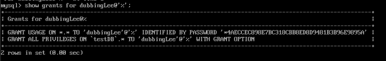 해당 계정권한을 testDB 스키마에 모든 테이블에서 select, insert, update, delete 할 수 있게 한다.