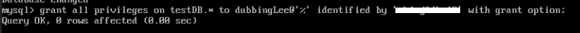 그 다음, grant all privileges on '스키마명'.'테이블명' to '계정명'@'호스트' identified by '계정비밀번호' with grant option; 을