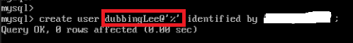 위 질의문은 dubbingLee 계정을 만들고, 외부 IP에서 접속가능하며,