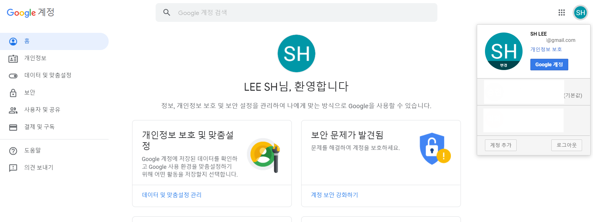 1) 구글 로그인을 하고 Google 계정을 클릭한다.