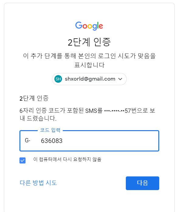 따라서 Gmail 계정에 추가 보안 인증을 해주면 문제 해결이 가능하다.