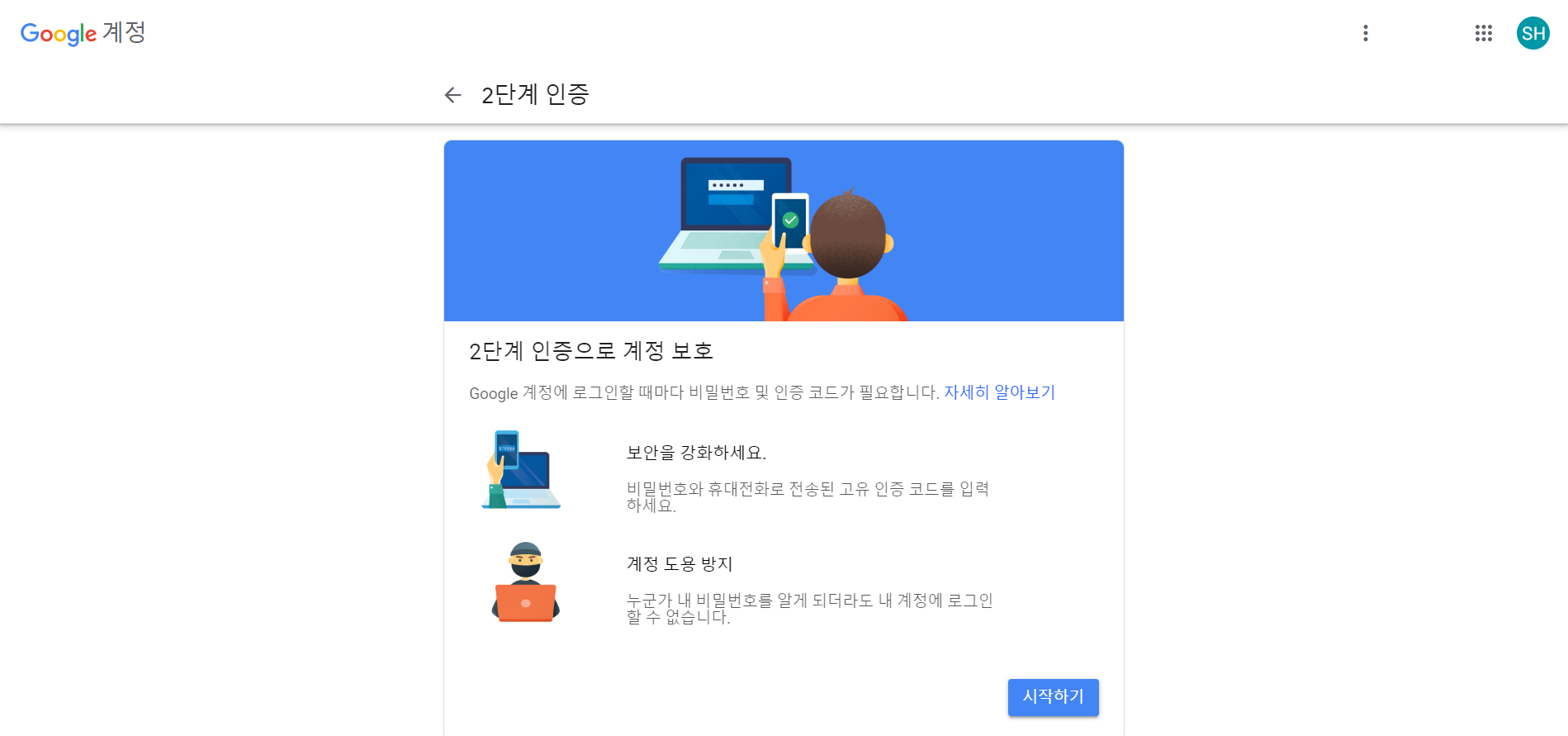 3) 2단계 인증을 시작한다.