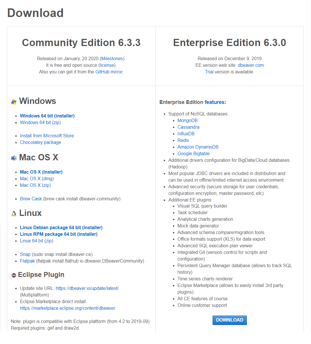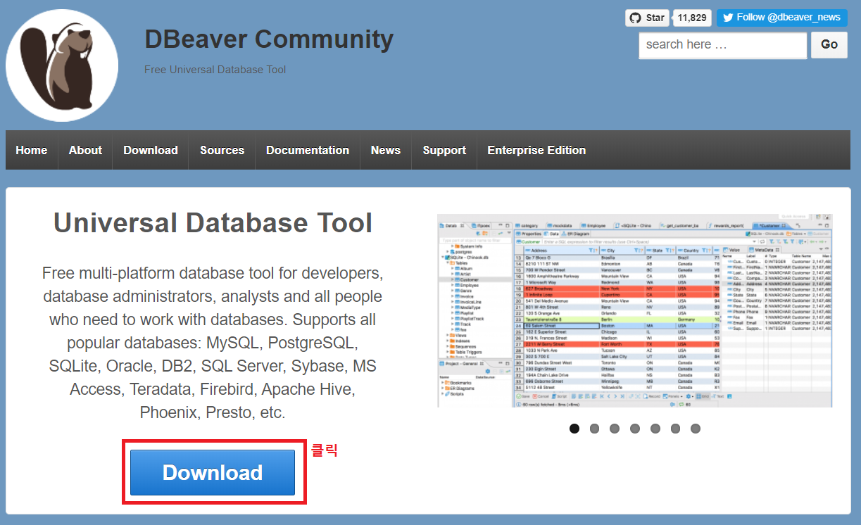 - 또는 다운로드 경로로 바로 가기 : https://dbeaver.io/download/