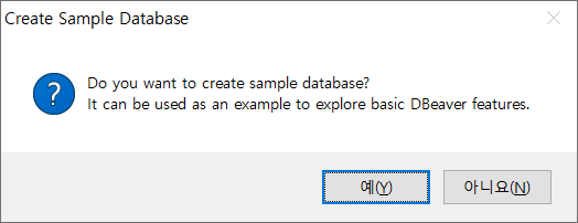 - 쌤플 데이터 베이스가 필요하면 "예(Y)" 클릭하자.