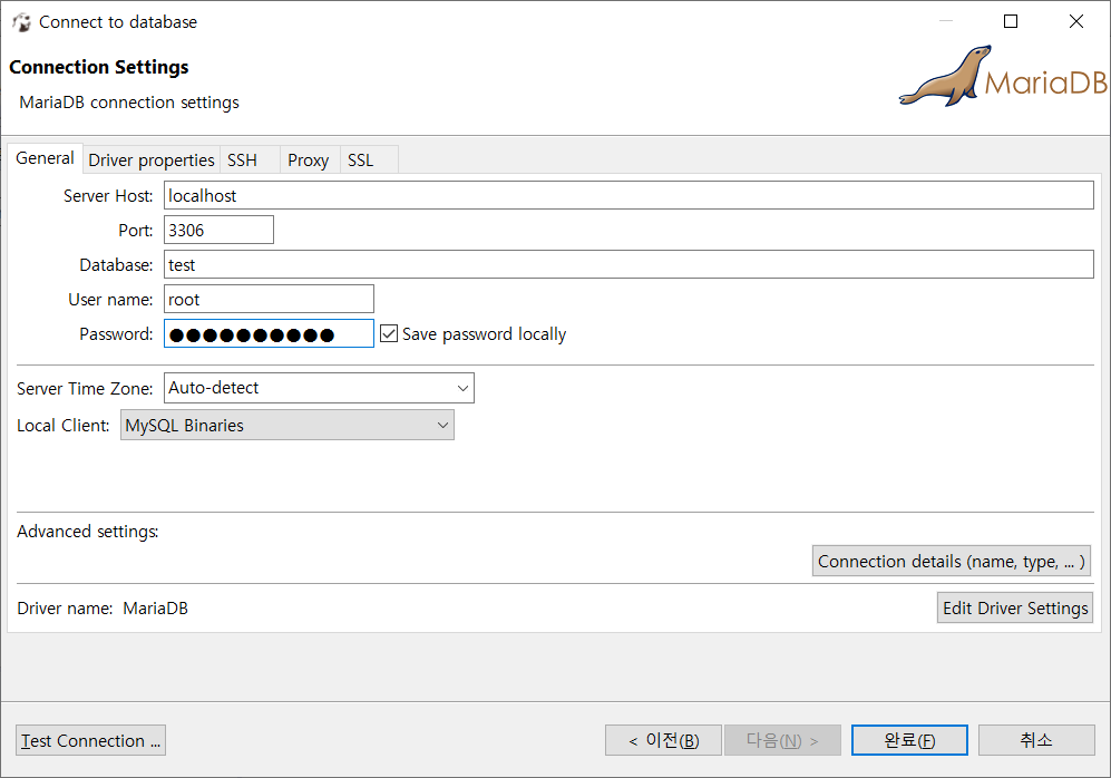 - 나와같은 경우는 Maria DB를 선택 하였다.
