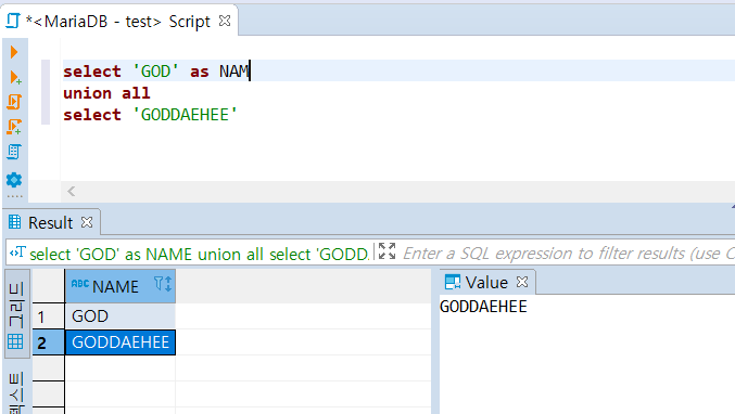 - 여러 DB(Oracle, MS-SQL, MySQL, PostgreSQL, MariaDB, 몽고 DB 등)의 접속 툴로 사용할 수 있다.