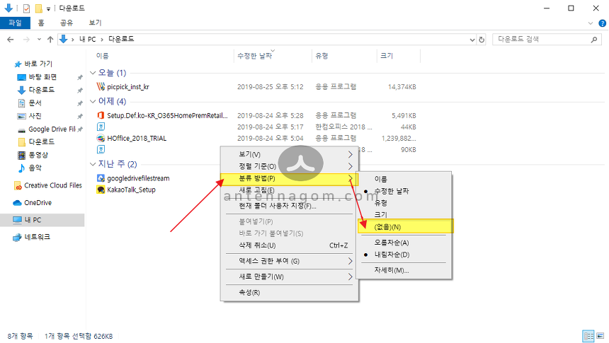 [컴퓨터] 윈도우10 탐색기 그룹 보기 설정 해제 방법 [펌]