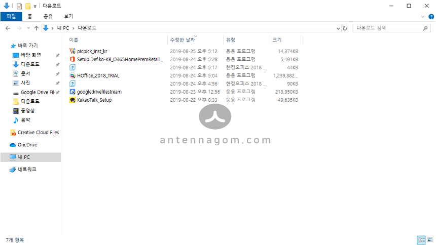 데스크탑과 노트북 모두 1903버전 윈10으로 설치하였는데 다운로드 폴더만 이런 거 보니 기본 설정인가 봅니다. 그런데, 익숙하지 않아서 일반적인 형태의 보기로 바꾸려고 했으나 소용이 없더라구요. 그런데, 알고보니 바꾸는 방법은 정말 간단한 거였습니다. 바로 아래 캡쳐화면처럼 하면 되는데요.