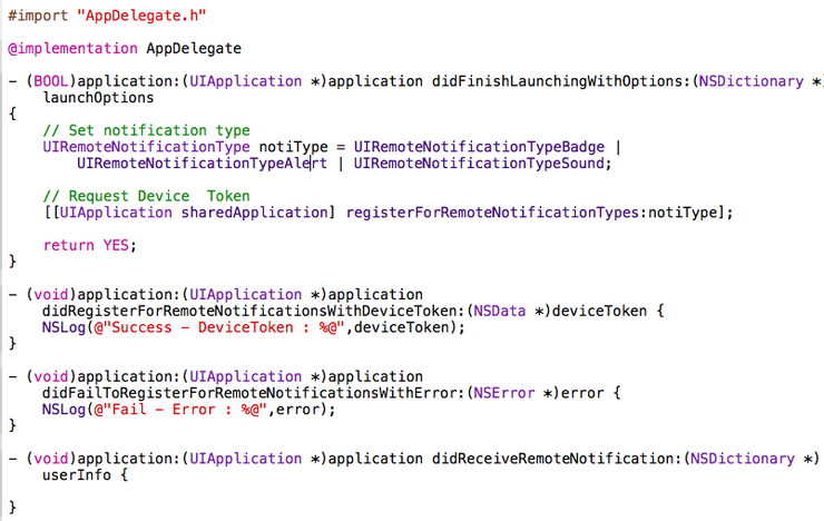 - 3) didFailToRegisterForRemoteNotificationsWithError : Device token 발급 실패 시 호출된다.