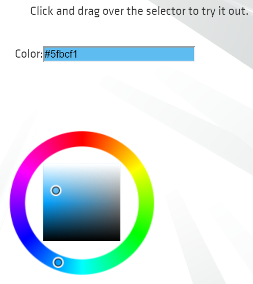 Farbtastic is a jQuery plug-in that can add one or more color picker widgets into a page through JavaScript. Each widget is then linked to an existing element (e.g. a text field) and will update the element's value when a color is selected.