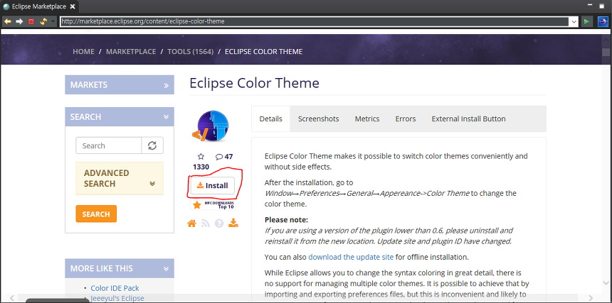원래대로라면 Eclipse Color Theme 라는 플러그인이 나와야 하는데