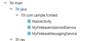 - MyFirebaseInstanceIdService : 디바이스에서 앱이 최초 실행되어 디바이스 토큰이 생성되거나 재생성 될 시 에 동작을 작성할 클래스