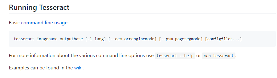 Tesseract에 대한 MD 에서 확인할 수 있는 사용법은 아래와 같다.