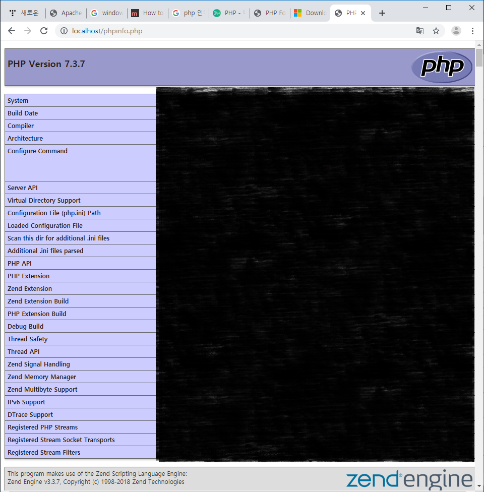 본 포스팅에서는 PHP 7.3의 VC15VC15 x64 Thread Safe (2019-Jul-03 17:49:17) 를 사용한다.