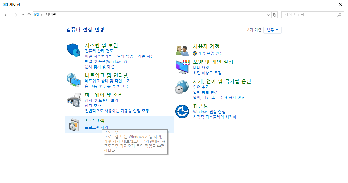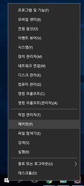 1 윈도우 - 마우스 오른쪽 클릭 - 제어판