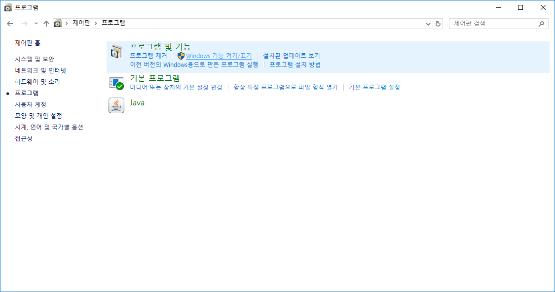 3 '프로그램 및 기능'에서 windows 기능 켜기/끄기 클릭