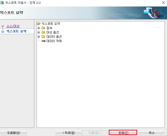 그럼 아래와 같은 익스포트 마법사 라는 창이 뜨는데