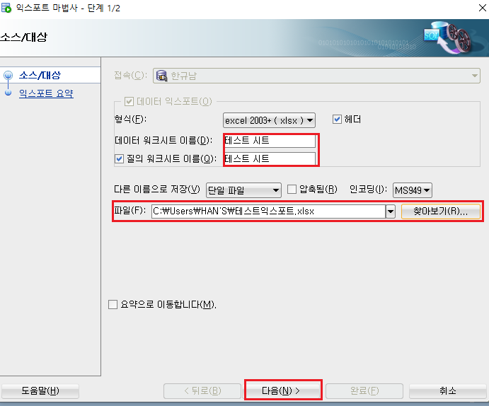 파일을 내보낼 위치를 지정하고 다음을 눌러주도록 하자