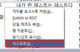 조건을 입력해 출력된 데이터목록에 마우스 우클릭을하고