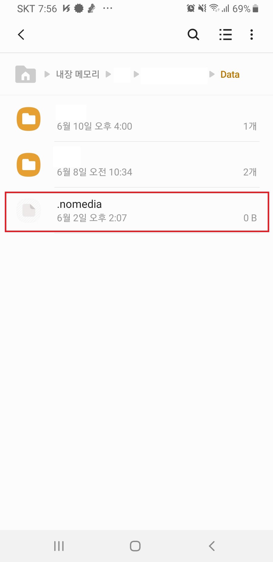 해당 폴더로 가서 파일만들기를 통해 .nomedia파일을 만들어주면 된다.